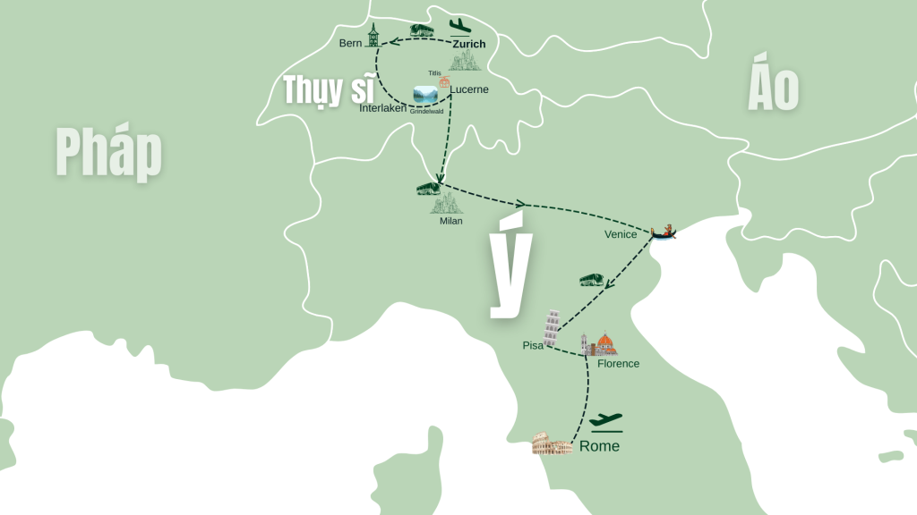 - Tour: 2 nước (Thụy Sĩ – Ý)